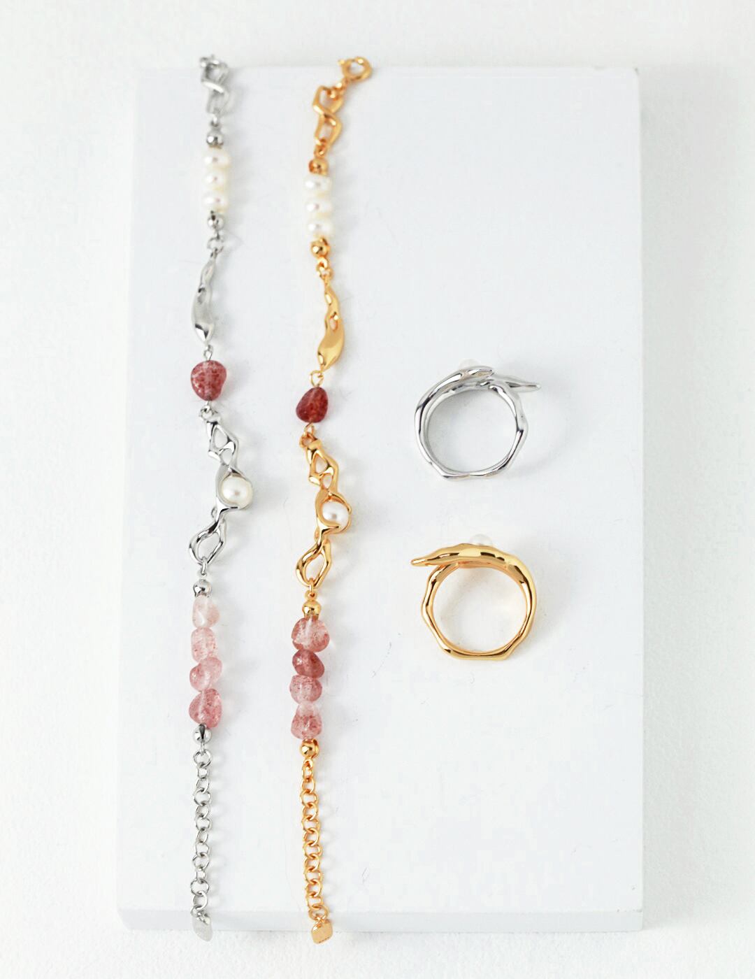 SV925の繊細なツイストデザインと天然宝石が織りなす、洗練された大人のブレスレット。藤蔓のように絡み合うシルバーと天然パールの絶妙なバランスが、上質でスタイリッシュな印象を与えます。天然石と絡み合った美しいデザインは、どんなシーンにもマッチし、特別な日のおしゃれを引き立てるアクセントになります。ブレスレットを身につけることで、日常のコーディネートに洗練された印象をプラスできます。日常使いはもちろん、特別な日のコーディネートにもぴったりのアイテムです。