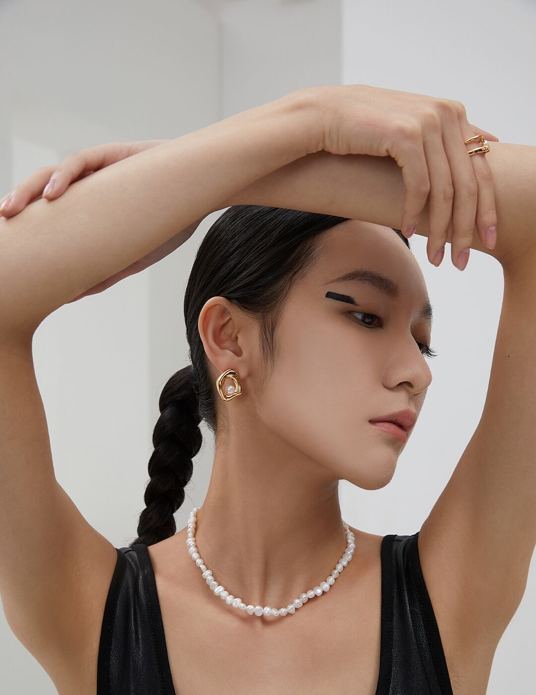 このピアスは、美しい天然淡水パールとシルバー925金メッキの組み合わせによって生まれる、洗練された非対称デザインが特徴です。淡水パールは、その柔らかな光沢と存在感で、どんなコーディネートにも華やかさを加えます。ジオメトリックな形状がモダンな印象を与え、ミニマルでありながら存在感があり、コーディネートのアクセントにぴったり!