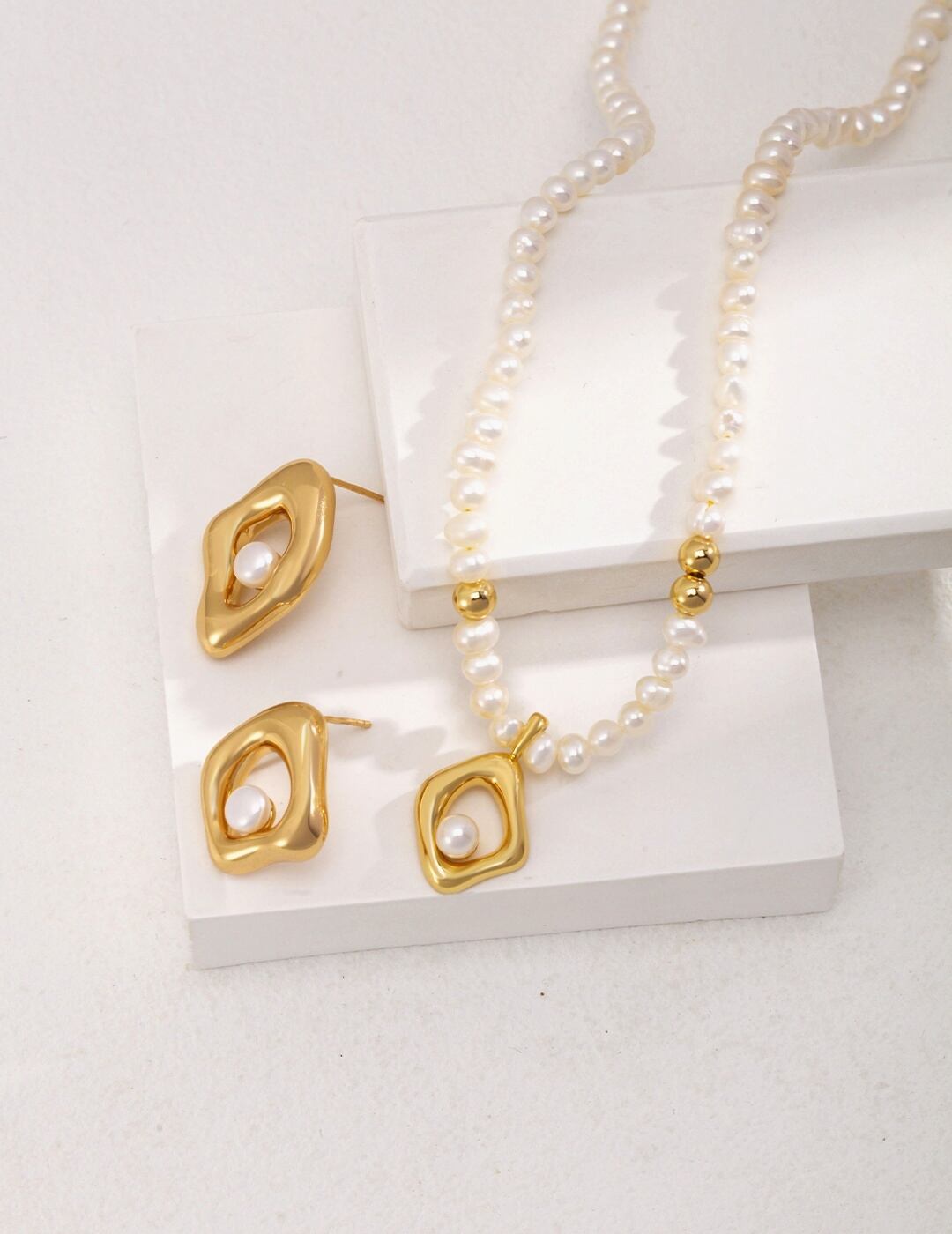ジオメトリックシリーズ 天然淡水パールネックレス シルバー925金メッキ 洗練されたジュエリー