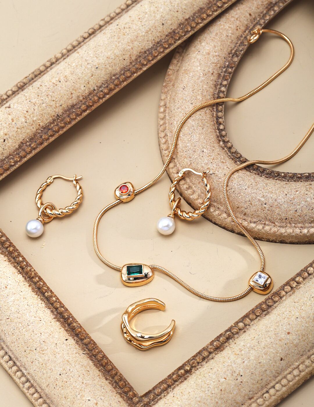 繊細なゴールドフープに、ふっくらとした天然淡水パールのチャームを組み合わせた、2WAY仕様のピアス。パールを取り外せば、シンプルで洗練されたミニマルデザインに変身。装いに合わせて印象を自在に変えられるから、デイリーからフォーマルまで幅広く活躍します。一つで二通りの表情を持つ、まさに大人のためのジュエリー。特別な日の装いにも、日常使いにも適したデザインで、あなたの個性を引き立てる存在感を放ちます。