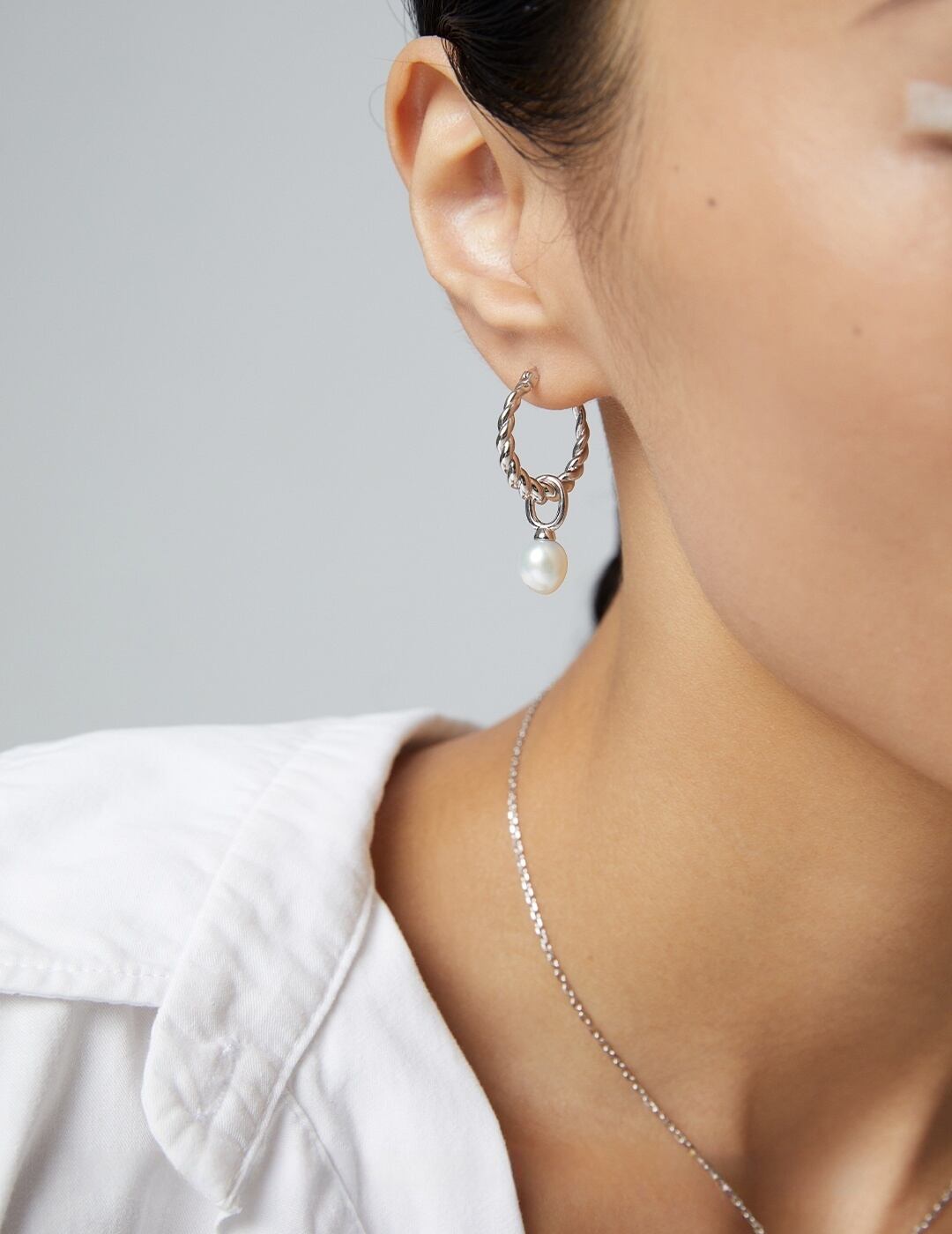 2WAYデザイン SV925淡水パール取り外し可能フープピアス|上品にもミニマルにも、自在な表情を演出