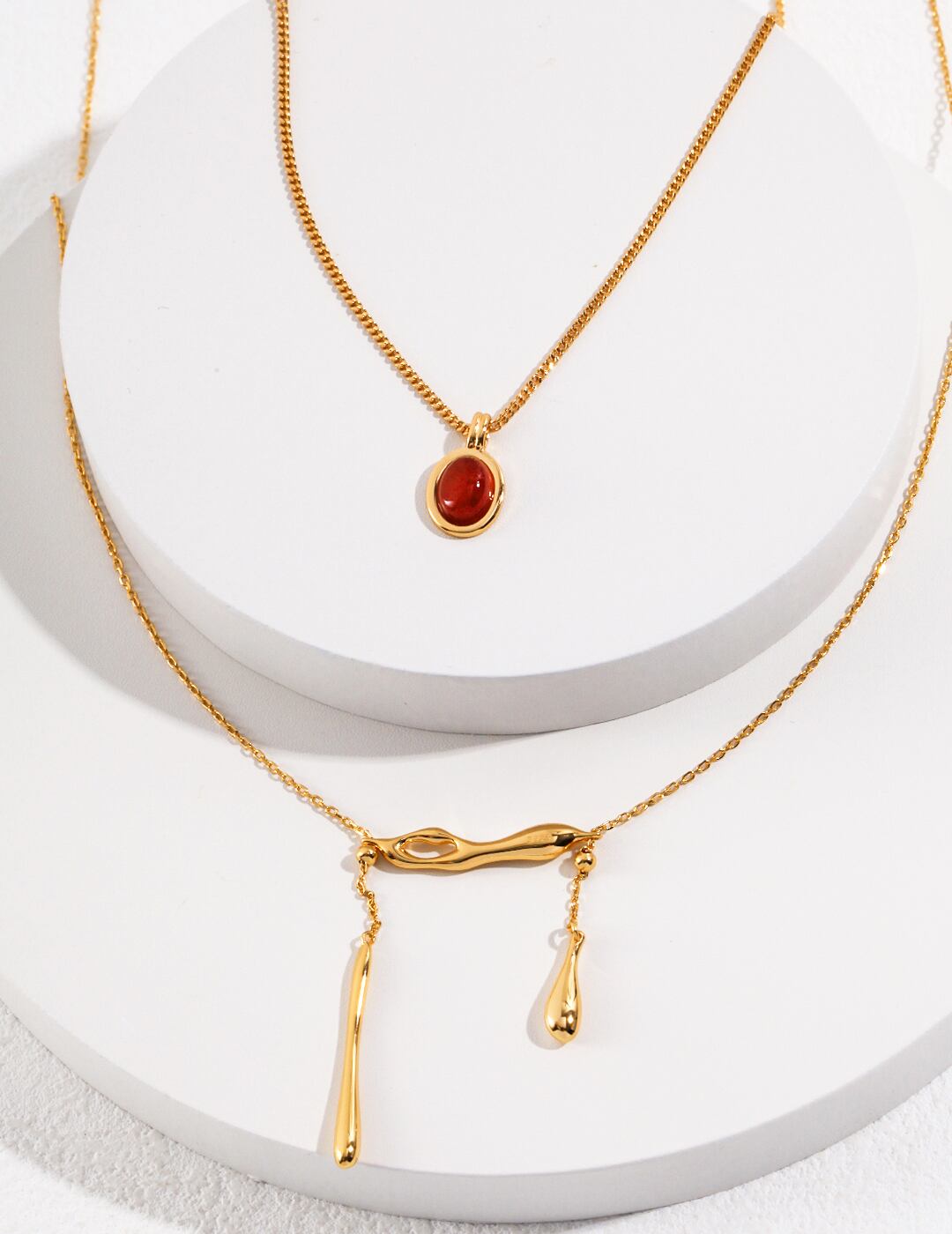 深い情熱と洗練を胸元に、SV925天然レッドアゲートネックレス|シンプルで洗練された一粒の美